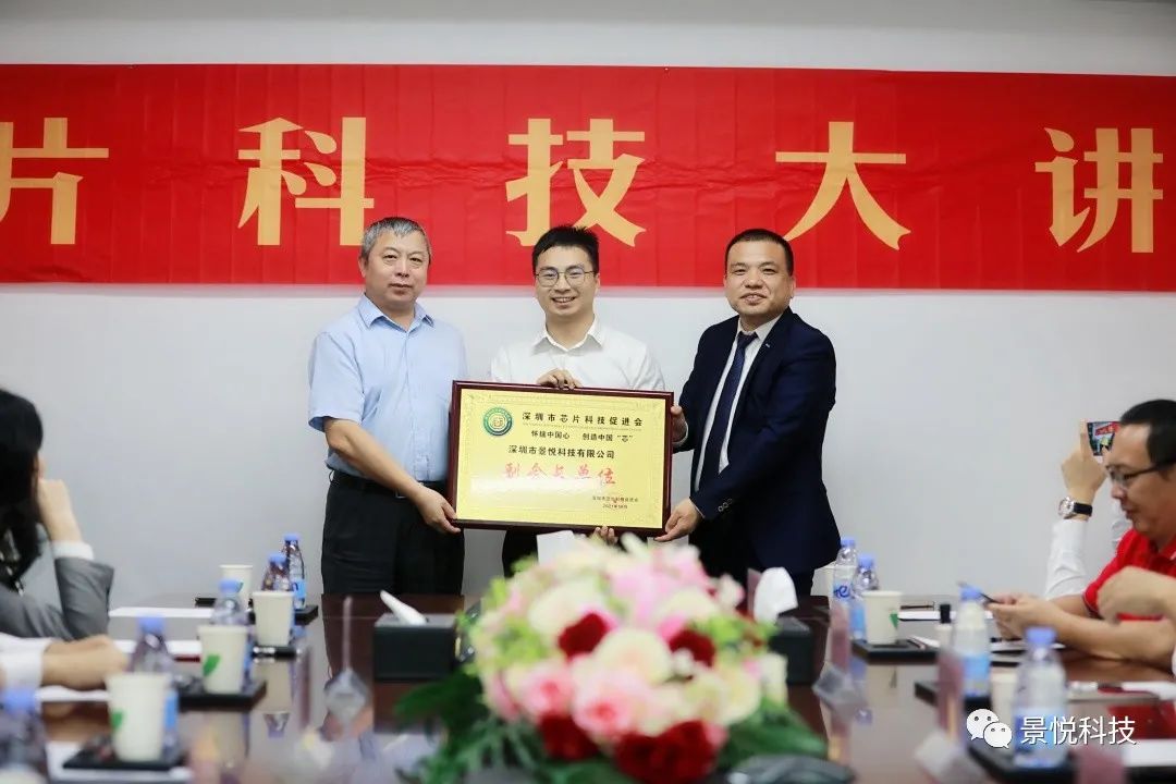 交流會上,深圳市芯片科技促進協會向景悅科技授予了(le)副會長(cháng)單位的(de)牌匾。