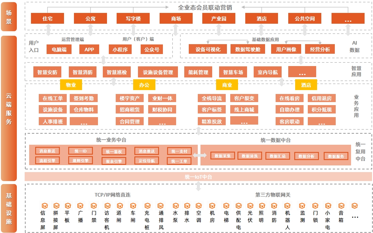 智慧城(chéng)區(qū)依托5G,AI大(dà)數據,物(wù)聯網,面向住宅、商業、辦公、酒店(diàn)等城(chéng)區(qū)業态,爲城(chéng)區(qū)全業态用(yòng)戶及經營管理(lǐ)者提供極緻化(huà)、個(gè)性化(huà)、人(rén)性化(huà)的(de)服務,打造可(kě)視、可(kě)管、可(kě)控、可(kě)預測的(de)超大(dà)城(chéng)市綜合體智慧管理(lǐ)體系。